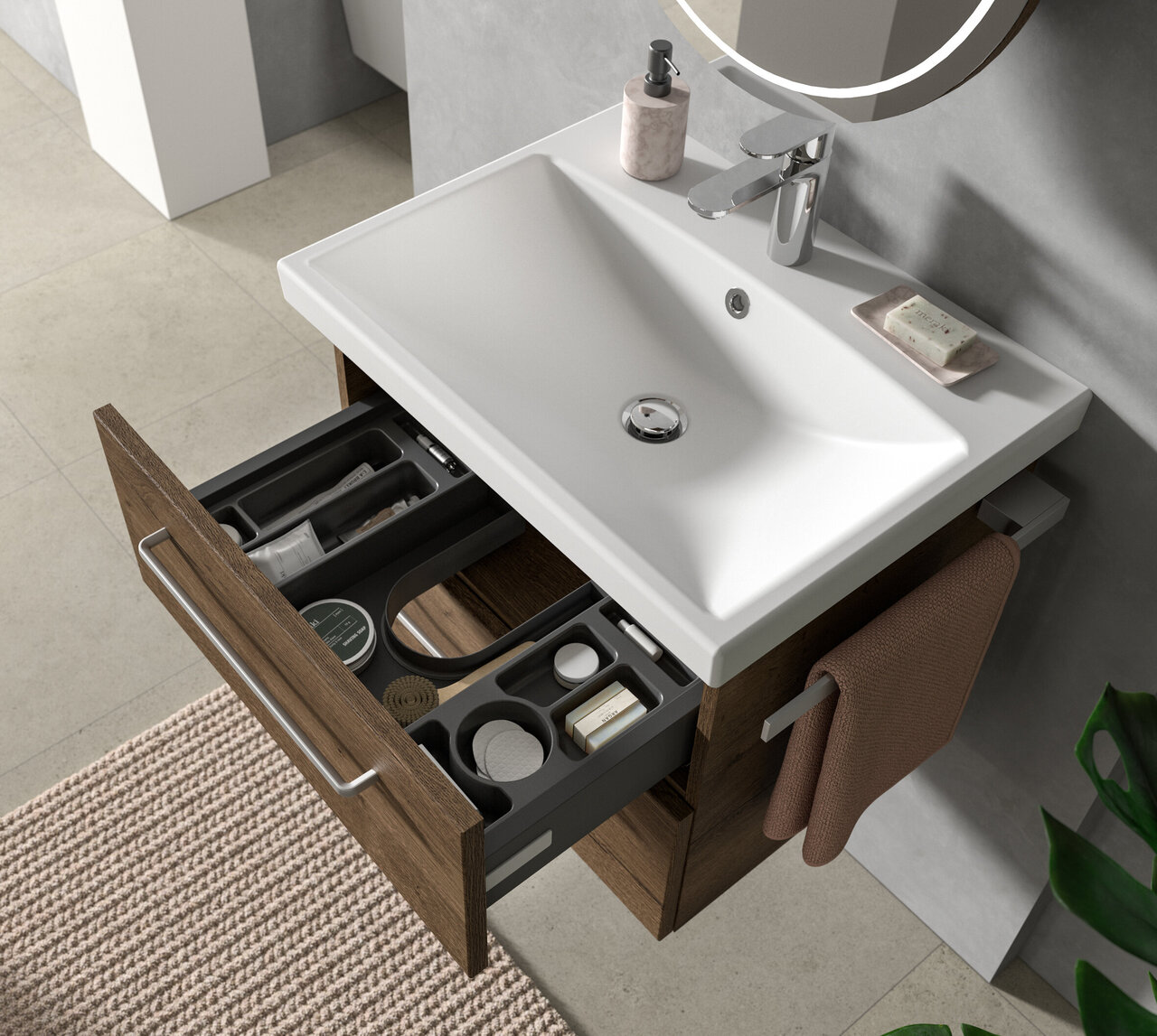 Ein sehr reichhaltiges Zubehör-Programm, das sich in jedes individuell geplante Bad integrieren lässt, erfüllt auch die anspruchsvollsten Kundenwünsche.